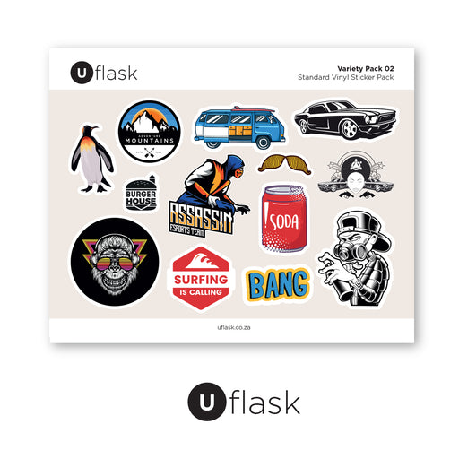 UFlaskOriginal price R 90.00 - Original price R 120.00Original priceR 90.00 - R 120.00R 90.00 - R 120.00Current price R 90.00| /High-Quality Premium Vinyl Sticker Pack Select a personalise or standard sticker pack and create your own masterpiece - a unique flask created by U...